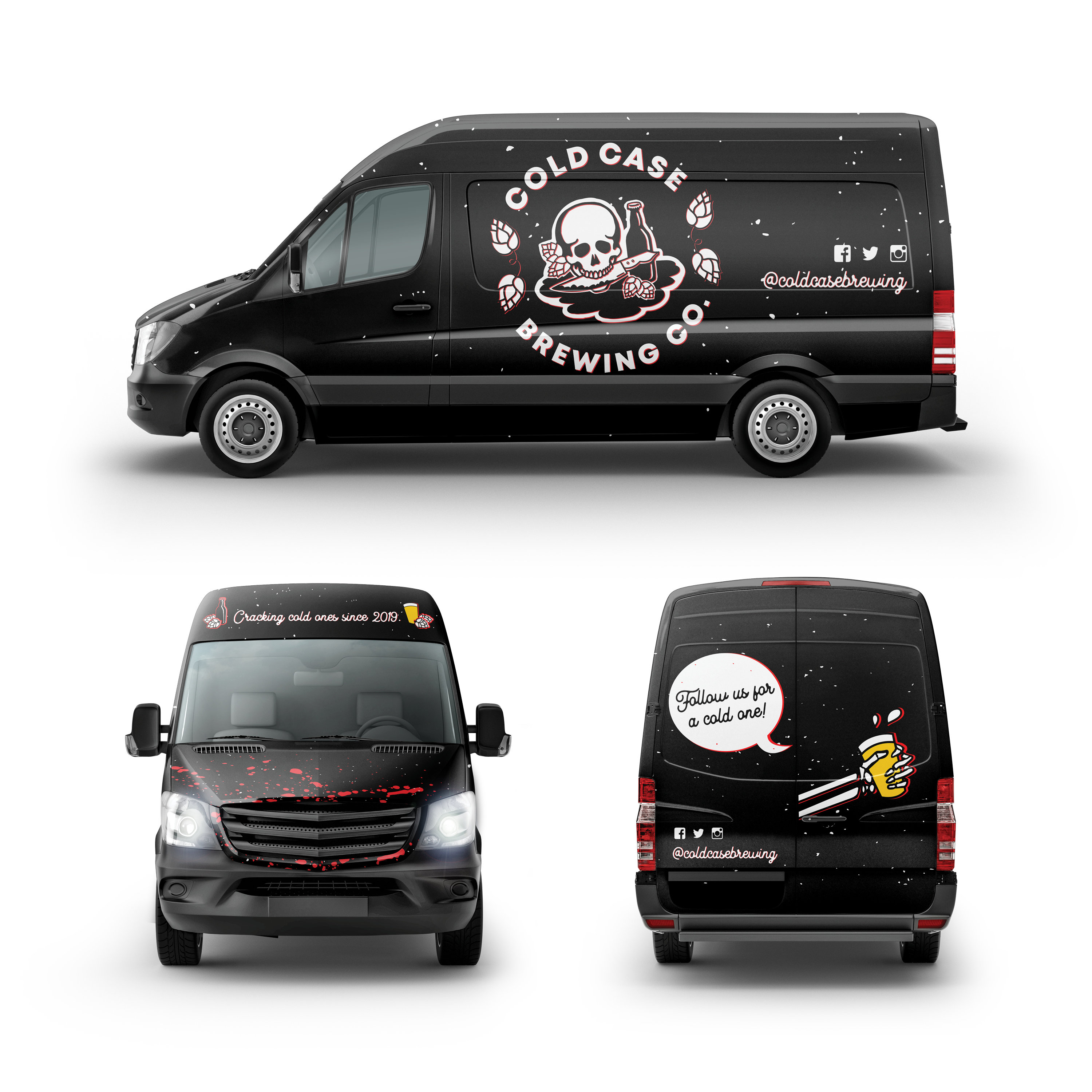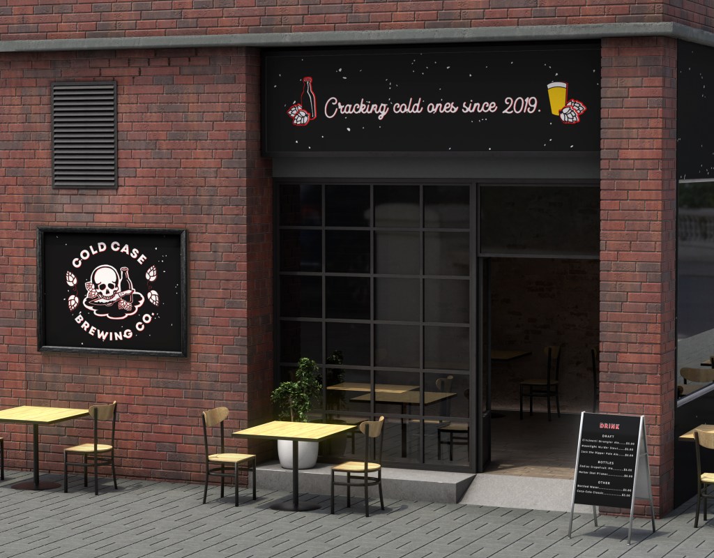 This was a fun exploration of a true crime-themed brewery, Cold Case Brewing Company. Assets included a logo, packaging designs, patterns, a vehicle wrap, and menu design. The target market is Millenials aged 25-35, interested in true crime and murder mystery-themed subject matter. Their other interests may include listening to true crime podcasts, watching documentaries, home brewing, reading about true crime, and watching fictionalized TV shows like Law and Order SVU, Mindhunter, Criminal Minds, etc.
