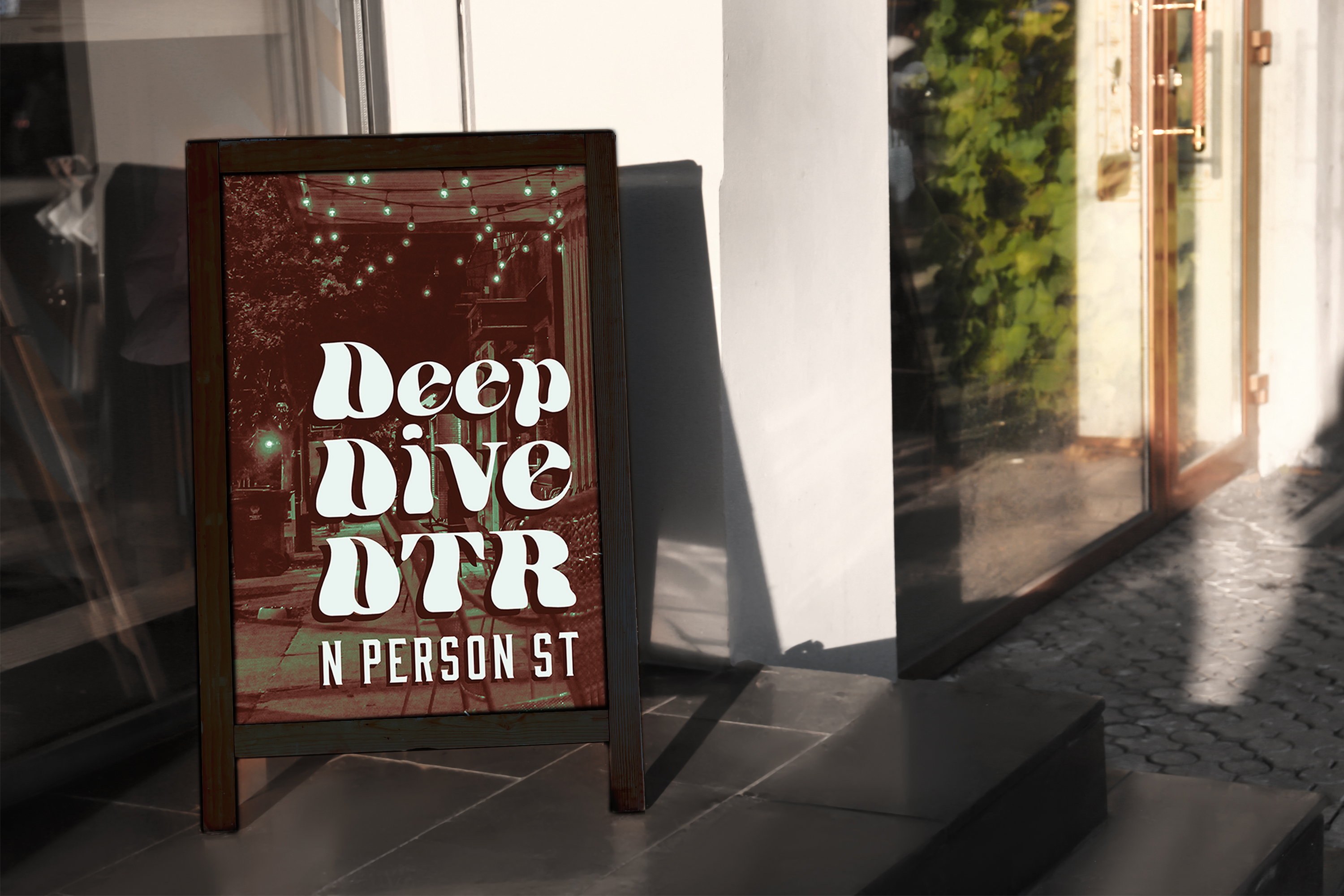 The final part of the campaign features sandwich board signage with Deep Dive DTR branding and neighborhood names. The signs will be distributed to select participating businesses. This signifies business participation and helps raise consumer awareness.
