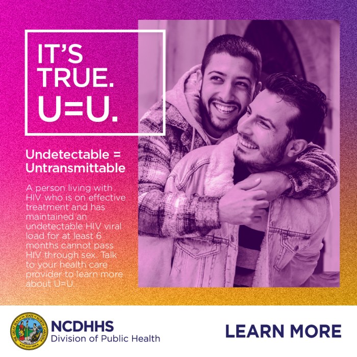 Undetectable = Untransmittable (U=U)’s goal is to clarify and disseminate the revolutionary but largely unknown fact that people living with HIV who are on treatment and have an undetectable viral load cannot sexually transmit HIV. The campaign is changing what it means to live and love with HIV worldwide, impacting every stage of the HIV care continuum and providing a new public health argument for increased access and reduced barriers to treatment and care.