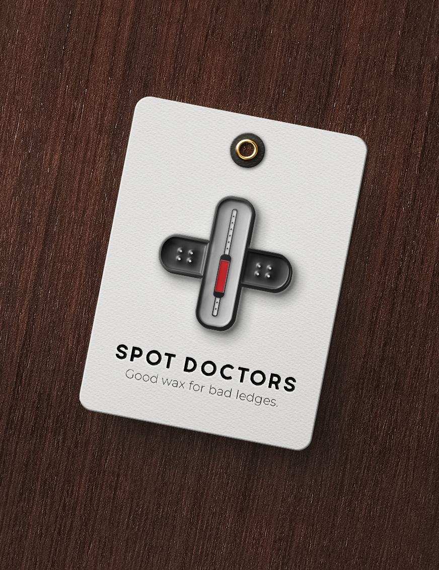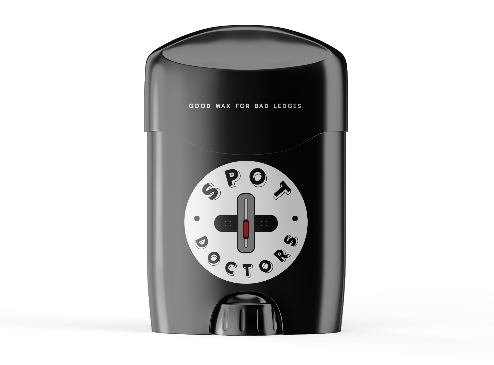 I also created a prototype and packaging for a Spot Doctors product, skate wax. Skate wax is used to reduce friction between the skateboard and the curb, ledge, or rail that you’re skating on. This allows the skater to go faster, slide smoother, and thus land tricks more easily. Spot Doctors skate wax is packaged in a plastic tube with a removable cap, similar to what you’d see antiperspirant or deodorant packaged in, to prevent melted wax from getting in your car or bag.